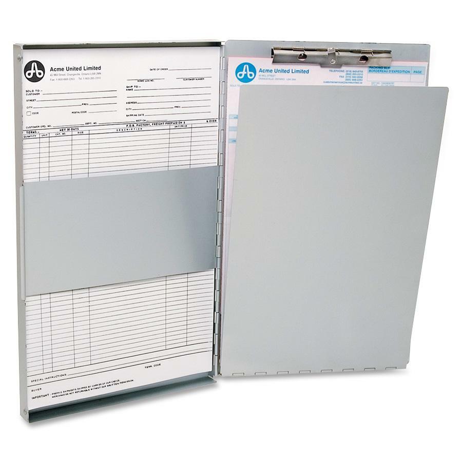 Sheet holder features a durable aluminum construction to maintain its integrity in demanding environments. Box-style shape provides an excellent way to store and protect a wide variety of documents. Sturdy steel clips lock your documents in place and aid in reducing slippage when writing. Hinged design allows the holder to open completely for quick, easy access.
