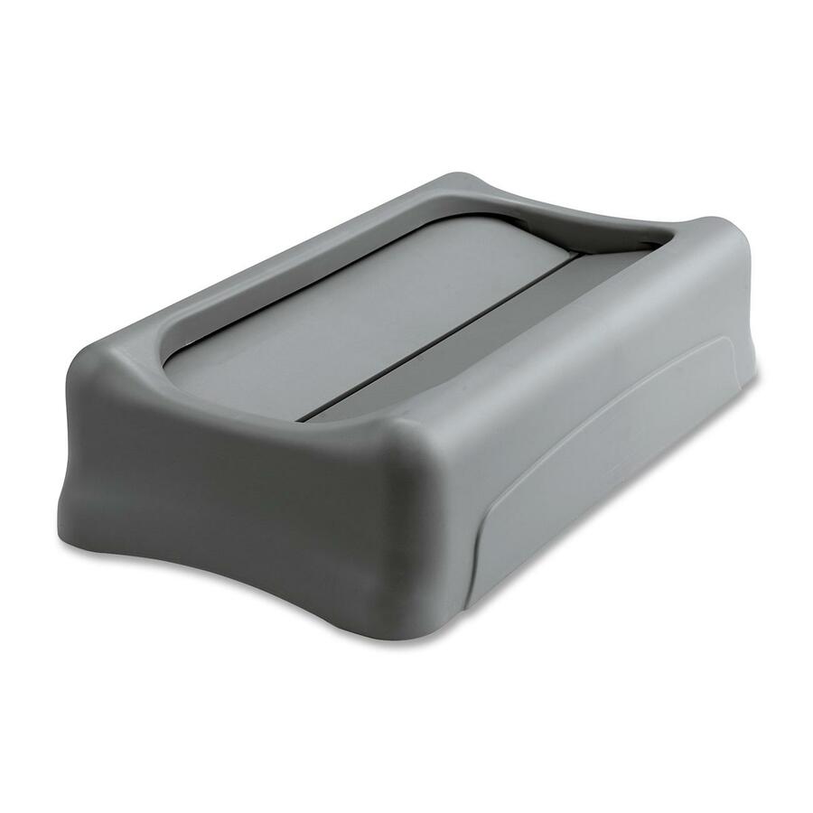 Swing lid is designed for use with Rubbermaid Slim Jim Containers. Lid provides easy access for trash disposal and then swings back to hide trash from public view. Counterbalanced design allows the lid to close by itself. Swing lid meets the sanitary needs of restaurants, snack areas and restrooms. The heavy-duty sturdy plastic is rustproof and easy to clean.