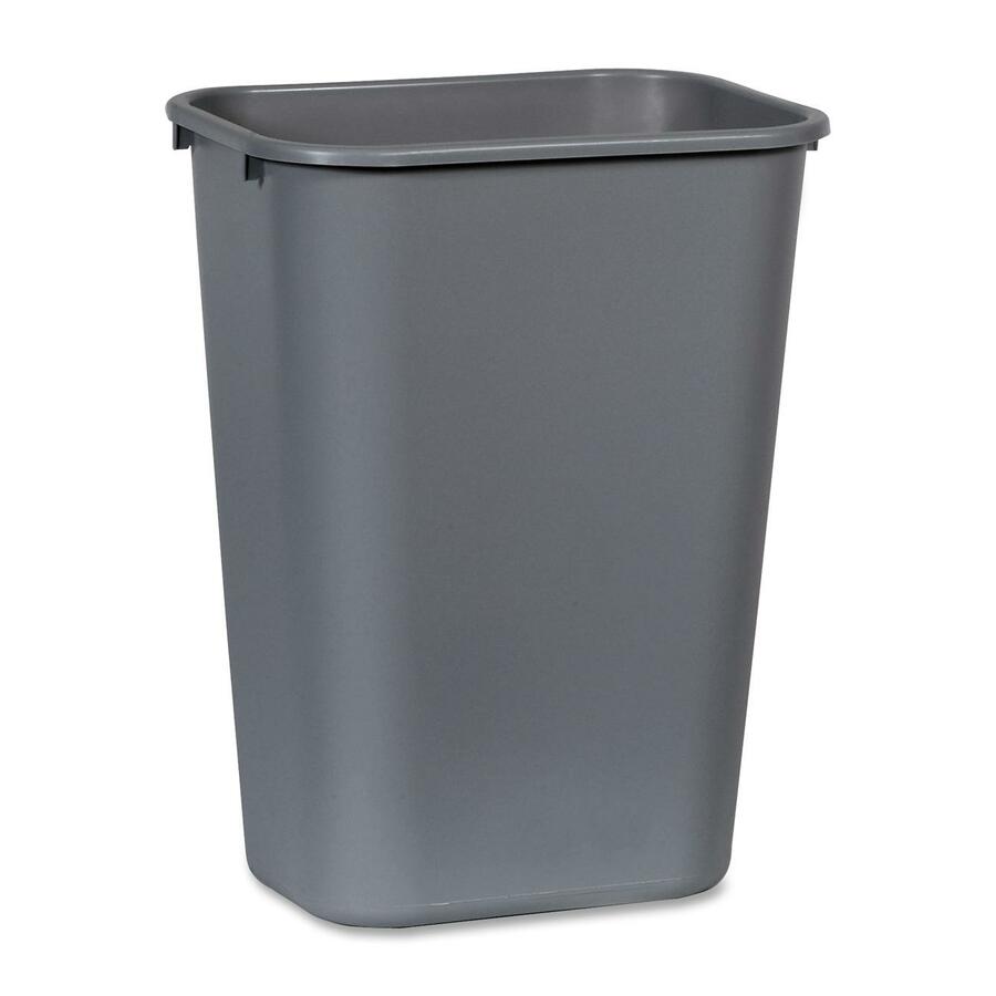 Space-efficient deskside wastebasket is durable and easy to clean. It fits under standard desk height even when a swing top (sold separately) is fully extended. All-plastic construction won't chip, rust or dent. Rolled rims add strength. Wastebasket will not mar furniture or floors.