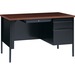 48" wide single-pedestal desk is part of the Lorell Fortress Series, a practical and professional desk solution ideal for business, government and educational offices. Use this right-pedestal desk with a Fortress left return for L-shaped configurations. Both have 3/4-height modesty panels for seamless lines. Durable, high-performance steel construction stands up to rigorous daily use. The 1-1/8" thick top with square edges features an Oak laminate surface that is scratch-resistant, stain-resistant and water-resistant. Design also features a box/file pedestal on the right. Both drawers lock and offer full-extension, ball-bearing slides and full-width, integrated drawer pulls. File drawer accommodates letter-size files. Central-locking center drawer features a core-removable lock. Center grommet allows easy cord management. Reinforced, double-frame inner structure keeps desk solid and sturdy for years of use. Steel desk meets or exceeds ANSI/BIFMA standards.
