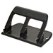 Three-hole metal punch features a low-force design to reduce the amount of effort required by up to 50 percent. Soft grip, oversized handle increases comfort and ease to safely punch up to 45 sheets of paper at a time. Paper edge guide ensures your pages are properly aligned for consistent punches. Punch base is perforated with a hole pattern to quickly see when the chip tray is full. Handle locks down in the closed position, with just the push of a button, for compact storage.