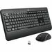 Wireless desktop set provides a reliable solution for any professional workstation. Full-size keyboard includes multimedia keys for enhanced productivity and quick access to your frequently used applications and files. Plus, its low-profile keys make typing more efficient and comfortable. Spill-proof keyboard is made with a sealed membrane that lets liquids run through without any damage to let you easily wipe it down after a spill. Ambidextrous mouse delivers all-day comfort for the right or left hand and uses an optical sensor with 1200 DPI for precise control. 2.4GHz USB receiver ensures you maintain a reliable wireless connection up to 32' for the keyboard and mouse. Secure Wireless connection protects your sensitive data from potential hackers using AES 128-bit encryption technology. Plug and play requires you to simply plug the receiver into your computer's USB port to experience the benefits of a secure and clutter-free desktop.