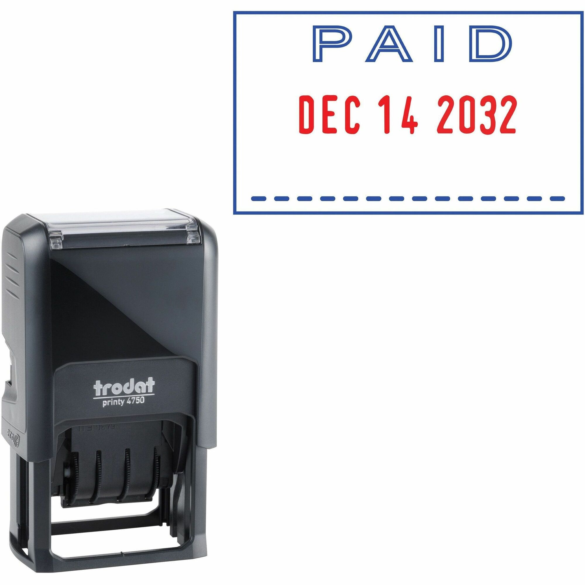 Self-inking stamp features a small, lightweight design for easy impression positioning and consistent use. Self-inking design lets you quickly create clear, crisp impressions in blue and red ink. Environmentally friendly construction is made from a high percentage of post-consumer material to help minimize its global impact. Plus, its easy-to-use construction allows you to quickly change the ink reservoir without getting your fingers messy.
