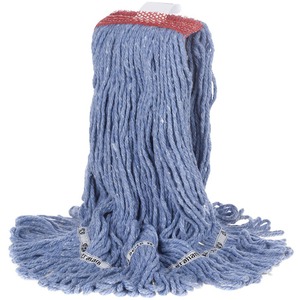 TuffStuff's synthetic-cotton blend yarn is a workhorse that outlasts conventional mops by 5 to 8 times and stands up well to laundering. The synthetic component of the yarn adds durability; the cotton boosts absorbency and reduces drying time. The tailband helps keep the mop’s fan shape, providing better floor coverage and eliminating tangles. TuffStuff narrow-band mops can be used with EZ-Change or Quickway handles and are the preferred mop for use in hospitals and long term care facilities