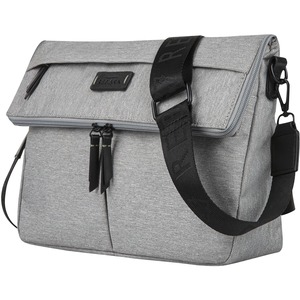 Polyester. Long adjustable shoulder strap. Zippered back pocket. Hidden front pocket. Snap closure for quick access. Internal tablet pocket. Integrated key ring. RFID protection to secure your personal information. Large pocket under the front flap with magnetic closure. Made from 100% recycled material.
