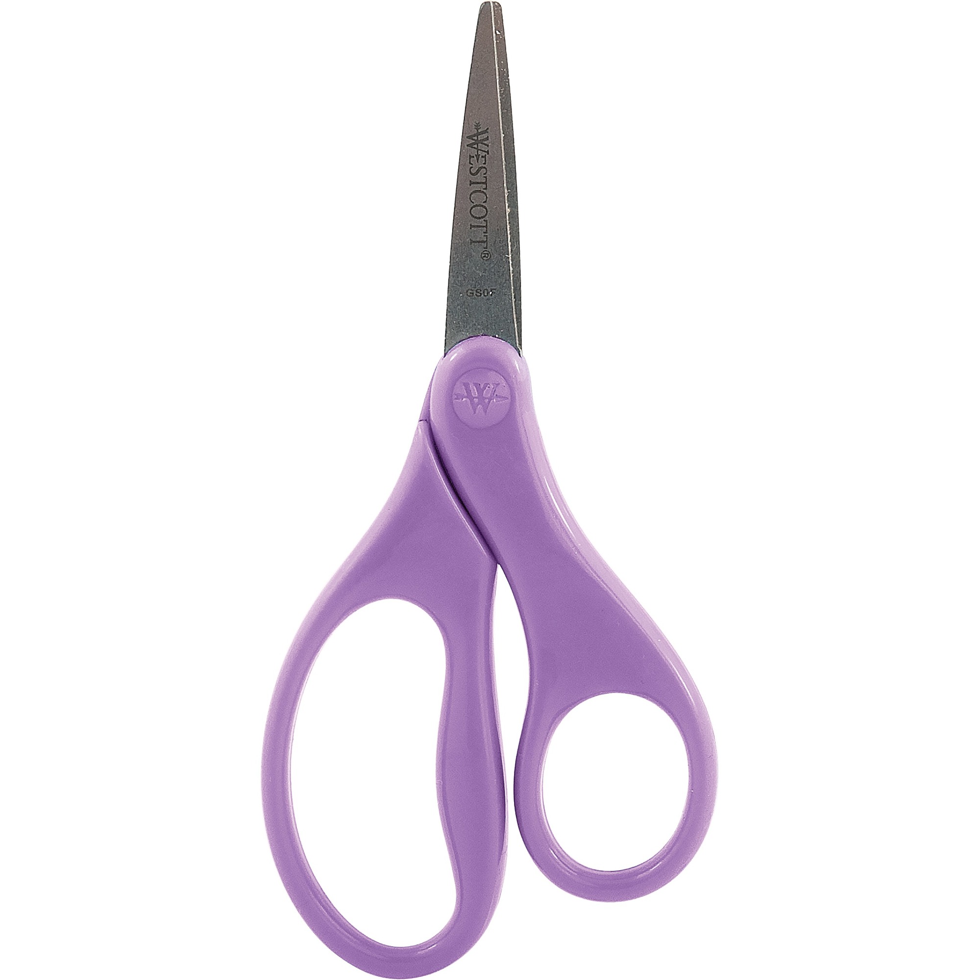 Designed for a more comfortable fit in a child's hand. Durable stainless steel blades. Antimicrobial agent to help inhibit the growth of bacteria stains and odours. Pointed tip. 5". 5-year warranty. Purple.
