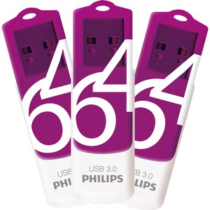 64 GB - USB 3.0 - White, Purple - 3 / Pack