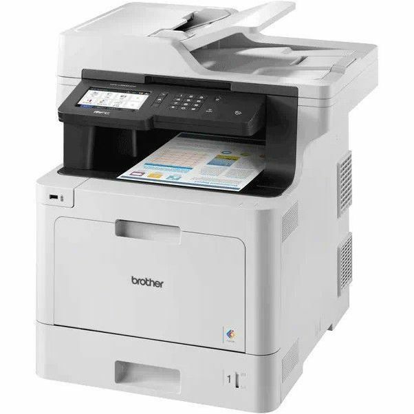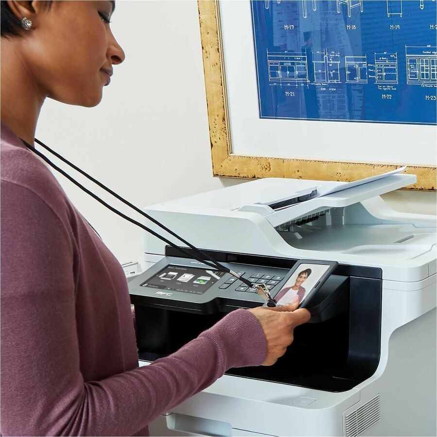 Color laser all-in-one features a large, 5" color touch screen to save you time with easy menu navigation. It also enables enhanced workflow customization with the option to create up to 64 customized shortcuts to simplify your complex and frequently performed tasks. Wireless 802.11b/g/n and Gigabit Ethernet network interfaces let you easily setup, share and print from any connected computer or mobile device. Its fast print speed produces up to 33 pages per minute for time-saving performance. Automatic duplex printing helps reduce your costs and produce professional two-sided prints. 70-page auto document feeder scans both sides of pages in a single pass for two-sided scanning. Advanced security features help protect against unauthorized access and control costs by restricting printing on a per-user or group basis. Printer also features 512MB standard memory, 800 MHz processor speed, 250-sheet adjustable paper tray, 50-sheet multipurpose tray, up to 2400 x 600 dpi resolution and more.