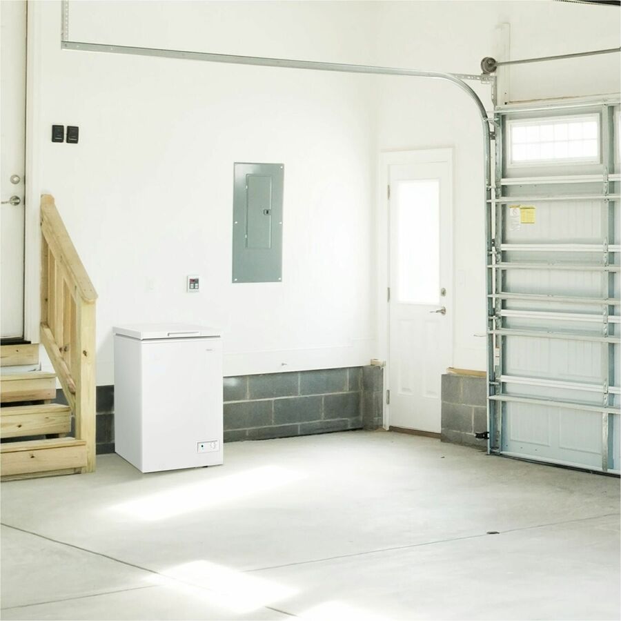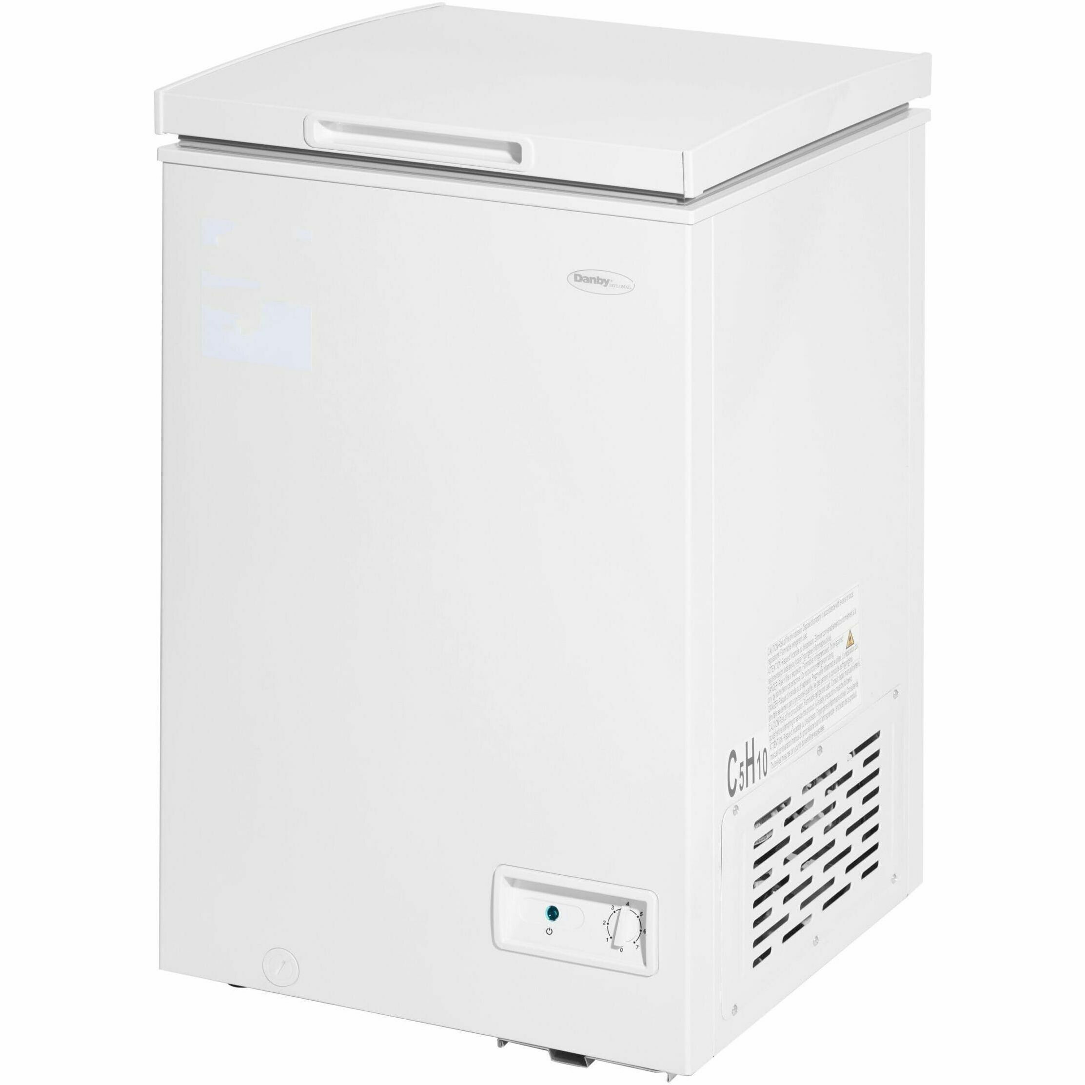 The Danby Diplomat 3.5 cu. ft. Chest Freezer is an ideal solution for households, cottages, offices, or any other location requiring additional storage space for frozen foods. Our power-on indicator light enables you to confirm the safety of your frozen items' preservation quickly and conveniently. This model is Garage Ready & able to maintain optimal performance at external temperatures between 0°F to -110°F (-17°C to -43°C). The 360-degree cooling system utilizes D-shaped coils that snugly hug the inner wall to optimize the freezing time of newly added foods in the freezer, which preserves nutrients. This model is DOE-compliant, saving you energy and money. This freezer can sit closer to walls thanks to the new thinner profile hinges. Additionally, the counter-balance hinges enable the lid to stay open at any angle, providing easy access. The freezer is equipped with a removable storage basket to help you separate and organize your food.