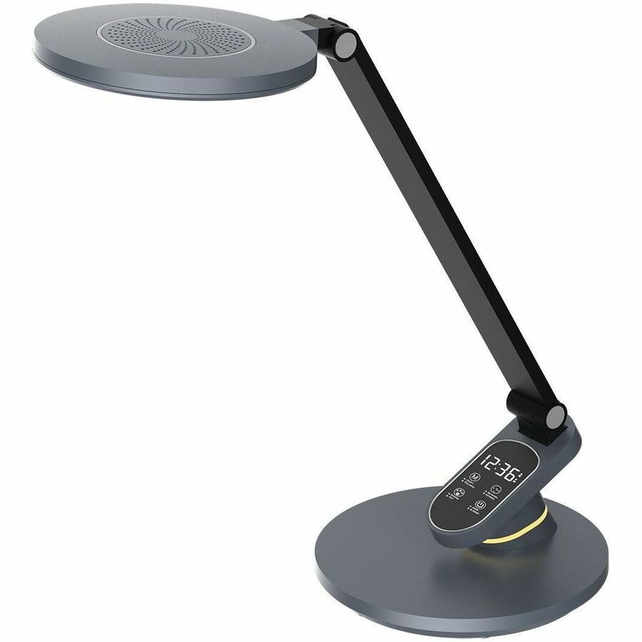 Dainolite Tandy 10W Wellness Metallic Grey Desk Lamp. LCD display of time, Rest reminder for reading, 3 color temperature, 3-step dimming, side panel lighting, anti-glare soft light, LED night light.