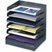 Classic office desk tray sorter offers contemporary finish. Slanted shelves feature finger notch-outs for convenient access. Decorative, textured powder-coat finish in black is durable and resists fingerprints. Desk tray is recyclable.